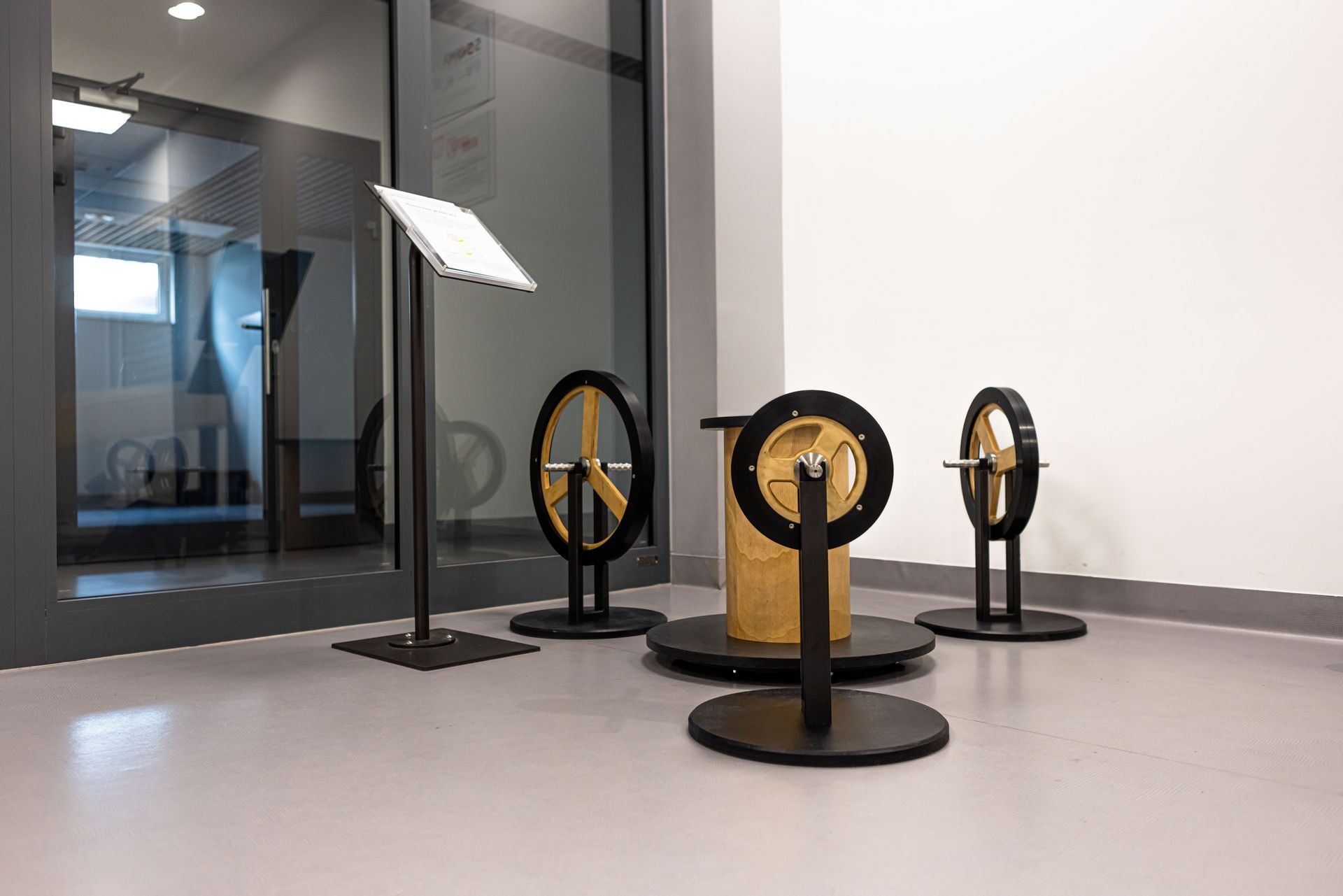 Introduction: We were commissioned to create 18 complete exhibits of exceptional quality that demonstrate two fascinating phenomena – the gyroscope effect and the rotational force of a wheel. Each exhibit consists of 3 wheels with stands, showcasing different sizes and weights to offer varying experiences for visitors.